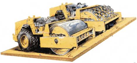 Свойства мелко- и крупнозернистых грунтов по уплотняемости. ГРУНТОУПЛОТНЯЮЩЕЕ ОБОРУДОВАНИЕИмеется несколько типов катков, используемых для линейного уплотнения скальной отсыпки и обычных грунтов. Наиболее распространенные типы машин и их общепринятое назначение представлены ниже. Статические катки, т.е. трехколесные, тандемные (двухколесные), на пневматических шинах и кулачковые катки доминировали на рынке до начала пятидесятых, когда были достигнуты значительные успехи в развитии уплотняющей техники с использованием вибрационных прицепных катков. К началу семидесятых тракторы и катки были объединены в одно самодвижущееся устройство. Лучшая маневренность этого типа катка обеспечила ему быстрое признание и он заменил собой прицепной каток. Самодвижущийся вибрационный каток с кулачковым вальцом типа "пэдфут" используется для уплотнения связных материалов. Наибольшие вибрационные двухосные катки с одним вибрирующим барабаном также совершенствовались в начале пятидесятых годов. Размер этих машин постепенно увеличивался и сегодня они достигают нагрузки до 15 тонн с вибрацией и приводом на оба барабана.
