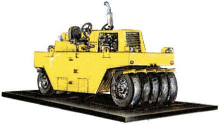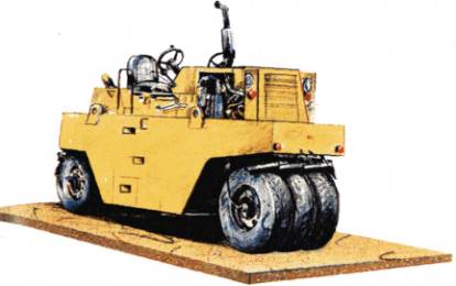 Пульт управления может быть повернут на 180 градусов. Это позволяет оператору выбирать самое удобное положение и обеспечивает хороший круговой обзор. Эксплуатация Существенно важно, чтобы каток обеспечивался надежным послепродажным обслуживанием. Оно различается от производителя к производителю, в особенности, когда катки являются лишь малой частью всей продукции компании. Лучше всего выяснить, доступен ли весь спектр обслуживания там, где каток намереваются использовать. Это снизит до минимума собственное обслуживание, в ином случае поломки неизбежны. Настолько, насколько это возможно, должны быть легко осуществимы ежедневные проверки, например, водяного и масляного уровней. Смазка должна ограничиваться основным узлом и цилиндрами. Все подшипники и им подобные части имеют предварительную смазку или находятся в масляной ванне и должны подвергаться обслуживанию после 2000 часов работы пли больше. Справка Общий для всех справочный материал подготовлен в разделе "Как выбрать вибрационный каток". Смотри, например, "Производительность уплотнения", "Безопасность", "Эксплуатация". Как выбирать каток на пневматических шинахПрицепные катки на пневматических шинах используются много лет. На заре развития катки до 200 тонн использовались не только для уплотнения, но также для определения слабых мест (укатка на прочность). Эти прицепные модели почти исчезли с развитием вибрационных катков для уплотнения грунтов; таким образом, в этом разделе рассматриваются только самоходные катки на пневматических Он, конечно, не охватывает все, что об этом известно, например, шинную технологию; но в полной мере общую технологию уплотнения с применением пневмошинных катков и основные факторы, которые должны приниматься во внимание при их выборе. УПЛОТНЯЮЩАЯ СПОСОБНОСТЬ