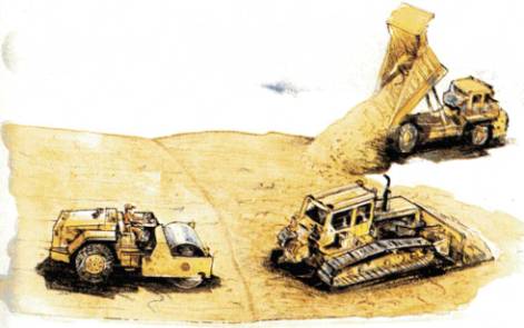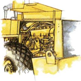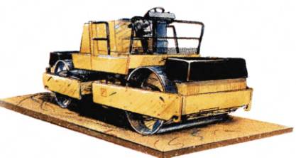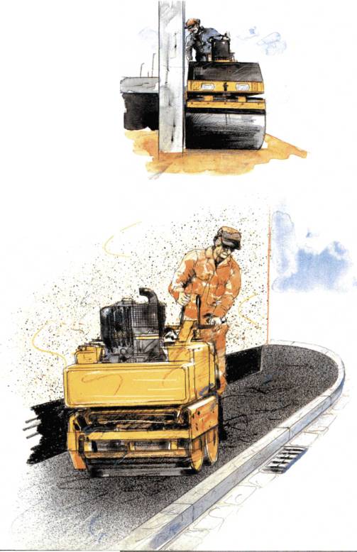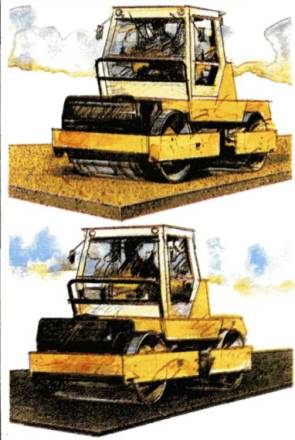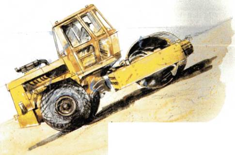 Вибрирующий элемент, располагающийся на раме, в противоположность размещению его в каждом вальце, создает достаточную вибрационную энергию на оба вальца и дает хороший уплотняющий эффект на грунте и асфальте. КОНСТРУКЦИЯ РАМЫ И ВАЛЬЦА Конструкция вальца должна быть в максимальной степени простой. Вибровозбудитель, расположенный на раме, в противоположность внутривальцовому расположению, обеспечивает достаточную вибрационную энергию на оба вальца и необходимое уплотняющее усилие на грунт и асфальт. Простота конструкции облегчает обслуживание. Опорные валы должны полностью проходить сквозь вальцы для устранения их изгиба и износа подшипников. Рама должна быть прочной и изготовленной из высокосортных сталей, чтобы противостоять жестким эксплуатационным условиям, в которых эти машины часто работают, и предотвращать ее деформирование. Если каток должен использоваться на крупнозернистых материалах, ему необходимы вальцы из высокосортных износоустойчивых сталей. ТЯГОВЫЕ СВОЙСТВА Как и в случае с крупными катками, есть много факторов, влияющих на тяговые свойства. Гидростатическая передача в основном довольно надежна до тех пор, пока гидравлическая система имеет достаточную мощность. Это позволяет оператору без усилий и плавно устанавливать скорость и направление движения катка. МАНЕВРЕННОСТЬ Плавное регулирование скорости является важным для маневренности, в особенности при приближении или работе вблизи препятствий. Небольшие размеры выступающих частей, гладкие боковые стороны, высокая способность приближения к бортику - все это оказывает влияние на возможность работы в стесненных условиях. ВОДОРАЗБРЫЗГИВАЮЩАЯ СИСТЕМА Пластиковые водяной бак и разбрызгивающие трубки предпочтительнее, так как они не корродируют. Большие емкости для воды обеспечивают машине лучшее использование рабочей смены, а воронка большого диаметра облегчает работу оператора по заполнению бака. ДВИГАТЕЛЬ