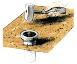 Отбор образца кольцом Для мелкозернистых грунтов, особенно глин, кольцо забивается в материал для того, чтобы извлечь керн (содержимое) для определения плотности.