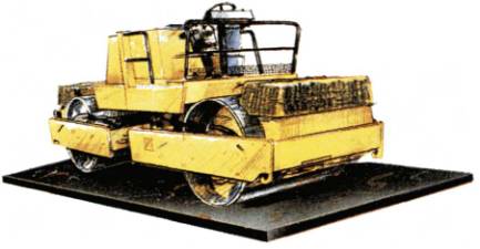 Расслоение смеси может появляться поперек слоя, на кромках и в центре. Это одна из наиболее распространенных причин разрушения асфальтобетонных покрытий. МЕХАНИЗМЫ СТАТИЧЕСКОГО И ВИБРАЦИОННОГО ДЕЙСТВИЯ ДЛЯ УПЛОТНЕНИЯ АСФАЛЬТОБЕТОНАИмеется большое количество типов катков для уплотнения асфальтобетона. Выбор машины зависит от вида и объема работы и связан с конкретными условиями. Имеется также ряд легкого оборудования для уплотнения асфальтобетона, включающий виброплощадки, двухвальцовые ручные катки и легкие вибрационные катки - тандемы. Уплотняющее воздействие статического катка со стальными вальцами в первую очередь зависит от его статического веса, а также от диаметра вальца. Уплотняющее воздействие пневмоколесных катков определяется их статическим весом и давлением в шинах. Они часто используются в комбинации со статическими гладковальцовыми или вибрационными катками при завершении укатки, чтобы удалить следы от вальцов и для выглаживания поверхности. Использование гладковальцовых и вибрационных катков в данном случае связано именно с завершением укатки, а не уплотнением. В вибрационных катках сочетается статическая нагрузка от вальцов с динамическими нагрузками. Вибрация значительно устраняет внутреннее трение в смеси и улучшает уплотняющее воздействие, даже если используются катки с относительно низкими статическими линейными нагрузками. Вибрационный каток всегда имеет более высокую производительность (выраженную в тоннах асфальтобетона, уложенного в час), чем статический каток того же веса. На жестких смесях эти различия выражены еще сильнее. СТАТИЧЕСКИЕ ТРЕХВАЛЬЦОВЫЕ КАТКИ Современные типы трехвальцовых катков имеют три больших ведущих вальца и совмещенное рулевое управление, в противоположность обычным моделям, которые имеют два ведущих стальных вальца и рулевой валец меньшего размера. Уплотняющее воздействие этих катков может изменяться в зависимости от балластировки водой. Масса катков 8-15 тонн.