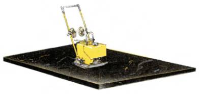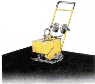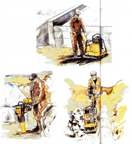 Виброплиты идеальны для малых работ или как дополнение к крупному оборудованию. Прежде всего они используются на крупнозернистых материалах с ограниченным количеством примесей. Тяжелые плиты используются на полусвязных материалах. Легкие плиты, снабженные водоразбрызгивателями, используются на асфальтобетонных работах. УСТРОЙСТВО ПЛИТЫ Подошва плиты для асфальтобетона Плиты для асфальтовых работ должны быть гладкими с закругленными краями во избежание появления следов на асфальтобетонной поверхности. Плита должна также выступать наружу, за край машины, чтобы обеспечивать возможность делать отделочные работы, например, вблизи стен. Подошва плиты (для грунта) Появление следа на поверхности является незначительным недостатком для плиты, работающей на грунте; главным критерием здесь является износоустойчивость и долговечность. Высококачественная сварная сталь в противоположность чугуну подтвердила свое наилучшее применение для подошвы плит, используемых на грунтах, в особенности, если производитель использует передовые сварные технологии, такие как роботизированную сварку. В таких плитах не возникает усталости, которая может иметь место в чугунной плите. Большие виброплиты должны иметь открылки для увеличения рабочей ширины плиты. Крепление плиты Резиновые крепежи эффективно уменьшают вибрацию, и, в основном, их легче обслуживать, чем спиральные пружины. Однако пружинный крепеж подтвердил свою эффективность на бетонном покрытии, так как он больше препятствует переуплотнению. Система привода плиты Хотя, возможно, ременная передача между мотором и плитой считается не такой усовершенствованной, как гидростатический привод, но она более надежна и ее значительно легче обслуживать и эксплуатировать. МАНЕВРЕННОСТЬ Появление механизмов переднего и заднего хода привело к существенному улучшению маневренности, в особенности, для больших плит. Плавное установление скорости также увеличивает маневренность, что является важным при выполнении уплотнения вблизи опор или аналогичных сооружений. У самоходной плиты только с передним ходом возникают затруднения для маневрирования особенно если она слишком тяжелая. Дистанционное управление Изобретение дистанционно-управляемых виброплит значительно улучшило условия для работы оператора и прежде всего за счет его полной защиты от вибрации. Дистанционное управление также улучшает безопасность, так как оператор может уплотнять глубокие траншеи или другие потенциально опасные или труднодоступные места без необходимости находиться в этих местах.
