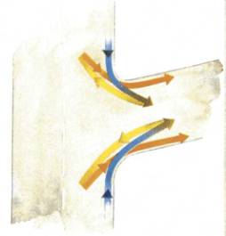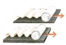 Существуют два способа уплотнения шва. На нижнем рисунке шов уплотняется катком, находящимся на холодной полосе, при этом он на 10-12 см перекрывает горячую полосу. На верхнем рисунке валец заходит на 10-20 см на ранее уложенную полосу, в то время как остальная часть вальца движется по вновь уложенному слою. МЯГКИЕ СМЕСИ Пластичные смеси склонны к горизонтальному перемещению при уплотнении, в результате чего могут появляться небольшие поперечные трещины на поверхности (3-5 мм глубиной). Обычно они могут быть ликвидированы завершающей укаткой или движущимся автотранспортом. Если появляются продольные трещины, то они часто глубокие и их очень трудно закрыть полностью. Укатка пластичных смесей требует специальных измерений. Часто они должны быть охлаждены перед началом укатки.