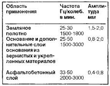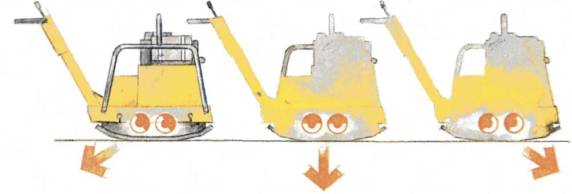 С помощью двух вибрирующих дебалансов можно регулировать скорость плиты от вибрации на месте до максимальных ее значений вперед и назад. Это обеспечивает плите высокую маневренность. Двигатель и рукоять крепятся к отдельной панели, которая предохраняется от вибрирующей плиты при помощи резиновых поглотителей ударов (амортизаторов) или стальных пружин. Уплотняющее усилие виброплиты увеличивается пропорционально ее массе. Влияние статической нагрузки и вибрации, в особенности на глубинный эффект, было отмечено ранее в разделе о вибрационных катках. Рациональный диапазон частот находится в пределах от 40-100 Гц (2400-6000 колебаний/мин.) при соответствующих амплитудах от 1 до 3 мм.