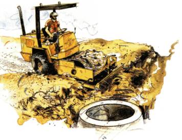 При уплотнении песка и гравия важно обращать внимание на различные их свойства, и прежде всего на фильтрационную способность, в отличие от тех типов грунтов, которые таковыми свойствами не обладают, как, например, пылеватые и глинистые. Песок и гравий достигают максимальной плотности в абсолютно сухом или водонасыщенном состоянии. При обычном содержании влаги они обеспечивают меньшую плотность. Однако ввиду того, что для песка и гравия кривая Проктора сравнительно ровная, достаточная плотность достижима во многих случаях вне зависимости от содержания влаги. Когда песок и гравий содержат определенное количество примесей (пыли или глины), они теряют свою способность к пропусканию влаги, становясь пластичными и упругими. Они, следовательно, представляют большую трудность для уплотнения, вот почему в таких условиях уплотнение должно производиться при оптимальном влагосодержании. (См. диаграмму на стр. 13) Если песок и гравий однородно рассортированы, часто возникают трудности для достижения высокой плотности вблизи поверхности (верхние слои толщиной 10-15 см) из-за низкого сопротивления сдвигу материала. Материал стремится выпучиться сзади вальца катка, и поверхностный слой, таким образом, имеет сравнительно низкую плотность. Однако это не имеет решающего значения на практике, ибо при послойной отсыпке верхний слой уплотняется при устройстве следующего слоя. Тем не менее трудности при уплотнении вблизи поверхности должны приниматься во внимание при проведении пробного уплотнения. Все вибрационные уплотнители эффективны и экономичны на песке и гравии. Тяжелые и средние катки обеспечивают уплотнение в толстых слоях. Легкие вибрационные уплотнители также будут обеспечивать хорошие результаты уплотнения на слоях небольшой толщины. Сухое уплотнение Песок также может быть уплотнен в сухом состоянии, например, в пустынных и полупустынных районах, где увлажнение материала представляется непрактичным или излишне дорогим. Самоходные вибрационные одновальцовые катки достигли достаточно удовлетворительных результатов на уплотнении 30-50 см слоев одноразмерного дюнного песка с содержанием влаги ниже 2 %. Сухое уплотнение с успехом было применено при сооружении дорог и взлетно-посадочных полос в Африке и на Ближнем Востоке. Пыль, пылеватые грунты