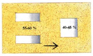 Для традиционных статических трехколесных катков схема укатки более сложная, чем схема, показанная на рисунке, так как два задних вальца имеют заметно более высокую линейную нагрузку, чем передний валец. На практике укатка трехвальцовыми статическими катками часто приводит к более высоким плотностям в середине полосы, чем вдоль краев. ЖЕСТКИЕ СМЕСИ Увеличение нагрузок на дороги приводит к необходимости устраивать более устойчивые асфальтобетонные покрытия. И, как следствие, более распространенными становятся жесткие смеси, содержащие высоковязкий битум и дробленый каменный материал с высоким содержанием щебня. Высокое механическое сопротивление уплотнению таких смесей требует эффективных методов уплотнения. Для достижения заданной плотности жестких смесей лучше использовать вибрационные катки.