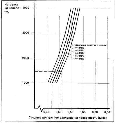 Например, при колесной нагрузке 1500 кг и давлении воздуха в шинах 0,4 МПа