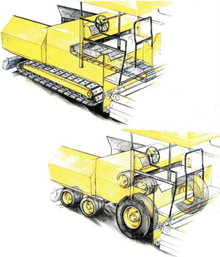 Укладчик должен обеспечивать устойчивую работу в конкретных условиях, в которых ему предстоит работать. Его способность соответствовать этим требованиям в немалой степени зависит, к примеру, от наличия на тягаче гусеничного хода или пневматических колес. Выбор между этими двумя ходовыми устройствами определяется некоторыми важными факторами: Поверхность Если укладчику предстоит работать на мягких или рыхлых несущих слоях основания, гусеницы лучше, чем колеса, так как они обеспечивают лучшую тягу. Колесный укладчик быстроходнее и его легче транспортировать самоходом, чем гусеничный, ему также часто отдают предпочтение при работе на прочных поверхностях.