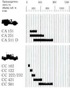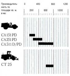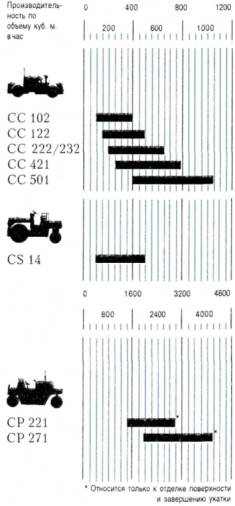 Складывающиеся кожухи и снимаемые боковые панели облегчают обслуживание и экономят время. Области применения катковСпособность уплотнять Этот раздел включает в себя основные технические характеристики машин, их производительность и эксплуатационные качества. Таблицы и диаграммы на следующих страницах показывают производительность и максимальную практическую глубину уплотнения для всех тяжелых машин. Для более легких катков, плит и т.д. приводится только глубина уплотнения. Данные о производительности и эксплуатационных качествах основаны на исследованиях фирмы Dynapac и технической информации, полученной в результате практической работы на стройплощадках во всем мире. Диаграммы, а также другая информация, приведенная на следующих страницах, полезны при определении требовании к машинам при различных работах. При производстве работе высокими требованиями к уплотнению, например, на дамбах, автомагистралях и взлетно-посадочных полосах аэродромов, могут потребоваться дополнительные проходы или более тяжелые машины для того, чтобы достичь технические требования к уплотнению или требуемую производительность. До того, как сделать окончательный выбор машины, всегда рекомендуется провести практические испытания по уплотнению, особенно когда появляются сомнения относительно производительности и результата уплотнения. Правильный выбор является наиболее экономичным. Данные, приведенные на следующих страницах, предназначены для расчетных целей. Для более подробной информации далее приведены таблицы с основными данными о машинах. Вся информация является точной на момент ее издания.