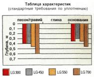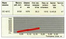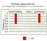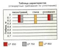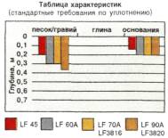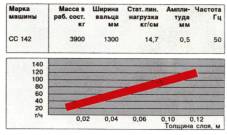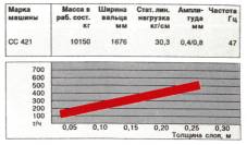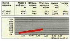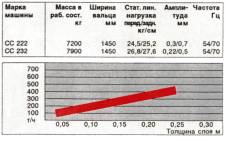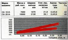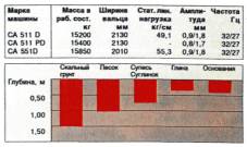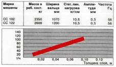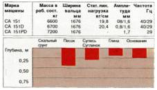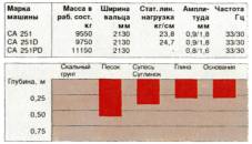 Взаимосвязь между диаметром вальца, контактным давлением и глубиной осадки. Из таблицы видно, что чем меньше диаметр вальца, тем выше контактное давление. Большие диаметры вальца, однако, могут дать лучший эффект уплотнения, особенно на мягких смесях. Примечание. Таблица дана только для сравнения и не может быть использована для определения осадки при конкретном уплотнении.