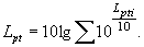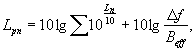 Для каждой частоты в критической полосе уровень шума Ln определяют по линии регрессии. Общий уровень маскирующего шума Lpn, дБ, в критической полосе определяют как сумму по энергии уровней Ln всех линий спектра в критической полосе с коррекцией на влияние применяемого окна по формуле