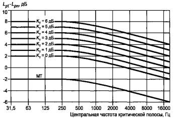Эта постоянная величина может изменяться в зависимости от частоты. Допускается использовать следующие значения разности уровней: 15 дБ - в низкочастотных третьоктавных полосах (от 25 до 125 Гц), 8 дБ - в средних полосах (от 160 до 400 Гц), 5 дБ - в высокочастотных полосах (от 500 до 10000 Гц).