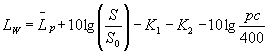 где Si - площадь сегмента измерительной поверхности, соответствующего i-й точке измерений (см. таблицы 2, 3 и 4), м2; S - площадь измерительной поверхности, м2. 6.1.2 Расчет уровня звуковой мощности Уровень звуковой мощности Lw, дБ, в каждой полосе частот диапазона измерений рассчитывают по формуле