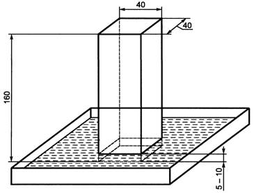 Рисунок 2 - Схема испытания по определению водопоглощения при капиллярном подсосе 5.5 Обработка результатов испытания Водопоглощение при капиллярном подсосе Wкп, кг/(м2∙ч0,5), определяют по формуле