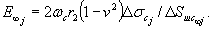 где ΔUш0j - величина условно-мгновенного перемещения поверхности основания на контакте кольцевого целика (штампа) с основанием на ступени Δσpj.