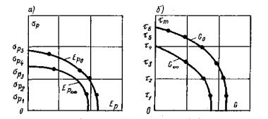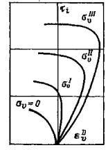 где Ev0 - условно-мгновенное значение модуля объемной деформации; Ev¥ - стабилизированное значение модуля объемной деформации при t ® 0. 6.31. Рекомендуется зависимость интенсивности деформаций сдвига от интенсивности касательных напряжений при заданной величине среднего нормального напряжения σv = const для различных моментов времени определять в следующей последовательности. По значениям Gtj, определенным по ступеням нагружения (см. п. 6.21), вычисляется относительная деформация сдвига Δγj для различных моментов времени t, соответствующая приращению среднего касательного напряжения Δτj на ступени нагружения Δγtj = Δτtj/Gtj. (28)