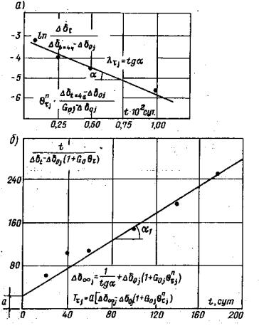 Рис. 22. Графическое определение параметров ползучести при сдвиге кручением: