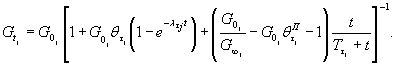 где G¥j, - модуль сдвига при t ® ¥, θПτj, λτj, Тτj-параметры ползучести при сдвиге; Δδ (t) - горизонтальное (угловое) перемещение внешнего контура кольцевого целика (штампа) в момент времени t.