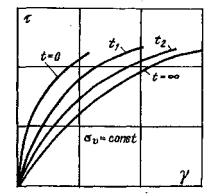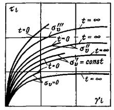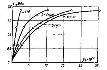 По вычисленным значениям Δγtj строятся зависимости γt = f (τ, t) путем суммирования относительных деформаций сдвига (рис. 24).)