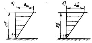 Рис. 19. Графики зависимости модуля деформации от нормального напряжения: при нагружении (а) и разгрузке (б). 6.13. Определение параметров ползучести на ступени нагружения растягивающей нагрузкой аналогично изложенному в п. 6.9 и 6.10. Рис. 20. Графики зависимости модулей деформации от действующих усилий: при растяжении (а) и сдвиге кручением (б). 6.14. Результаты расчета модулей деформации при нагружении массива нормальной сжимающей или растягивающей Нагрузкой и при разгрузке рекомендуется обобщить в виде графиков (рис. 19 и 20) либо в табличной форме. Таблица 2 Таблица значений коэффициента ωk