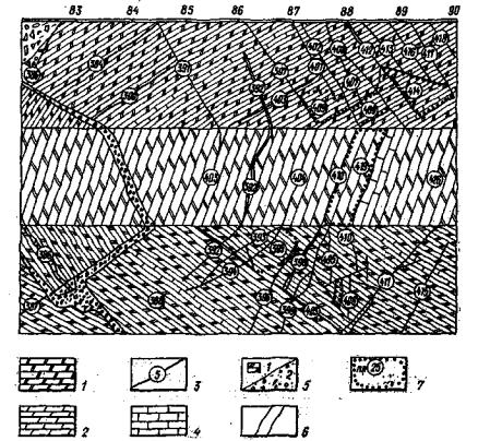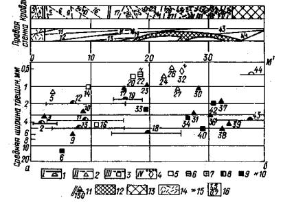 б) Коэффициент трещинной пустотности, %: по системам линейный (Кт.п.), представляющий собой отношение суммарной ширины трещин на измеряемом участке к его длине, для массива - объемный (К°т.п.), получаемый суммированием линейных по системам.