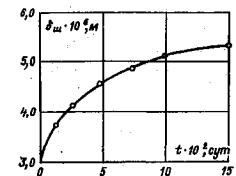 где Еc¥ - модуль деформации при t ® ¥; θσj, vσj, Tσj - параметры ползучести, ΔSj (t) - осадка основания целика (штампа) на ступени нагружения нормальной нагрузкой в рассматриваемый момент времени t.