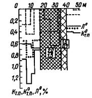 11. Для установления закономерностей изменения основных показателей криогенного строения по выработке строятся графики изменения льдистости и коэффициента трещинной пустотности по системам трещин и суммарных, позволяющие судить о взаимосвязи льдистости с пустотностью.