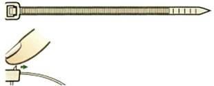 Рис. 8.3.2. Стяжки (хомуты) кабельные стандартные одноразовые 8.4. Монтаж гибких соединений.8.4.1. Переход проводов второстепенных цепей с неподвижной на подвижную (выдвигаемую, открываемую и т.п.) часть электроконструкции следует выполнять в виде петли медными проводами с многопроволочной жилой. Применение алюминиевых проводов для гибких соединений не допускается. 8.4.2. Гибкие соединения следует выполнять в виде жгутов, работающих на скручивание. Защита проводов гибкого соединения осуществляется с помощью каналов для прокладки монтажных проводов круглого сечения или обматыванием поливинилхлоридной лентой (см. рис. 8.4.1, а, б). 8.4.3. Гибкие соединения с количеством проводов до семи могут быть выполнены также в поливинилхлоридной трубке (см. рис. 8.4.1, в).