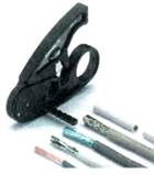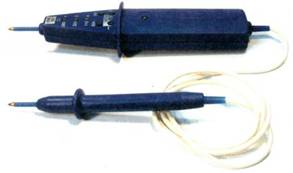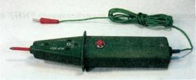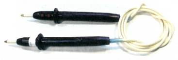 9.2.6. Удобным средством маркировки являются обычные (см. рис. 9.2.10.) или термоусаживаемые (см. рис. 9.2.11) трубки, причем надписи на них могут наноситься с помощью автономных принтеров. Такие трубки выполняют функции не только маркировки, но и изоляционной оконцовки. 9.2.7. Наибольшей универсальностью обладают ламинирующиеся этикетки (см. рис. 9.2.3). Они позволяют маркировать кабели и провода любого профиля с диаметром от 3 до 60 мм. Этикетки охватывают кабель с перехлестом, поэтому маркировка оказывается между двумя слоями пленки и хорошо защищена от внешних воздействий. Кроме того, такая маркировка надежно крепится даже на сильно загрязненных кабелях. 9.2.8. Для ручного нанесения надписей на месте работы применяются маркеры на картах (см. рис. 9.2.4) или рулонах, установленных в диспенсер (см. рис. 9.2.5). Маркеры в рулонах применяются при нанесении надписей на автономном принтере, а маркеры в листах - для изготовления заготовок на универсальных принтерах. 9.3. Методы нанесения надписей.9.3.1. Методы нанесения надписей: - применение маркировочных элементов заводского изготовления; - нанесение надписей вручную с помощью несмываемых маркеров; - применение машинок для холодного тиснения; - применение машинок для горячего тиснения; - применение специализированных автономных портативных термотрансферных принтеров (см. Приложение 5); - применение специализированных стационарных термотрансферных принтеров совместно с персональными компьютерами (см. Приложение 5); - применение универсальных матричных или лазерных принтеров; - применение обычных лазерных принтеров (при использовании сменных клипс для маркировки). 9.4. Прозвонка проводов и жил контрольных кабелей.9.4.1. Прозвонку проводов и жил кабелей небольшой длины, когда возможна переговорная связь от одного конца кабеля (провода) к другому без применения специальной аппаратуры, рекомендуется производить пробником (см. рис. 9.4.1). 9.4.2. Отыскивать тождественные жилы проводов или кабелей, концы которых находятся на большом расстоянии друг от друга или в разных помещениях, могут два электромонтажника с помощью переговорного устройства или двух телефонных трубок и батарейки от карманного фонаря, соединенных по схеме, приведенной на рис. 9.4.2. На каждом из концов кабеля 4 или проводов один из выводов телефонных трубок 1 или 2 следует присоединить к «земле», броне кабеля или жиле определенного цвета через отрицательный вывод батарейки 3. Один электромонтажник должен подключить второй вывод трубки 1 к любой жиле кабеля, а другой - вторым выводом трубки 2 найти эту жилу, поочередно присоединяя вывод к жилам кабеля, пока не послышится характерный звук. По замкнутой цепи номер жилы передается по схеме.