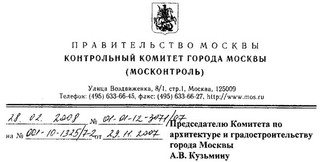 утверждения проектов планировки территорий, утвержденный Москонтролем данным