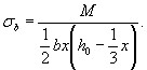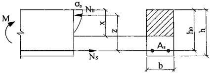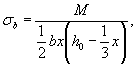 здесь αs = Es/Eb, μs = As/bh0. Напряжения в вершине сжатой зоны бетона определяются по формуле, принимая момент относительно растянутой арматуры