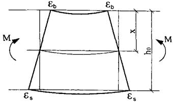 где εb - деформации бетона в вершине сжатой зоны; εs - деформации растянутой арматуры. Исходя из условия линейного распределения деформаций по нормальному сечению деформации растянутой арматуры можно выразить через деформации бетона