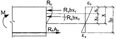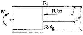 Рис. 6 В результате уравнение равновесия продольных сил в нормальном сечении для рассмотренных выше железобетонных элементов запишется в виде: Rbbx = RsAs, откуда высота сжатой зоны определяется по формуле