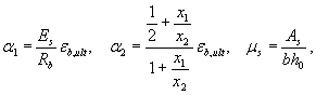 Значения параметров высоты сжатой зоны х1 и х2 определяются по формулам: