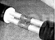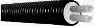 - Изопекс-2 (рис. 10) - гибкий трубопровод из сшитого полиэтилена для отопления/горячего водоснабжения в двухтрубном исполнении (диаметр от 2´16 до 2´50 мм), с теплоизоляционным слоем из полужесткого пенополиуретана в гофрированной трубе-оболочке из полиэтилена. Рассчитан на давление 0,6¸1,0 МПа для тепловых сетей с температурным графиком +95°... +70° (пиковая температура +110°С);