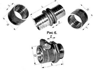 Рис. 3 Монтаж характеризуется значительным уменьшением количества стыков или полным отказом от стыковых соединений на трассе. По сравнению со стальными трубопроводами в ППУ изоляции, для прокладки трубопроводов Изопекс ширина траншеи, а следовательно и объемы земляных работ уменьшаются на 40%. Благодаря гибкости трубопровода упрощен монтаж: нет опор, компенсаторов, возможна любая конфигурация трассы, отсутствует сварка. Наличие фасонных изделий обеспечивает подключение к существующим сетям тепло- и водоснабжения, монтаж врезок, запорной арматуры, ввод в дома. Соединение труб (рис.5) фитингов осуществляется с помощью латунных обжимных (рис.6) или пресс-фитингов (рис.7).