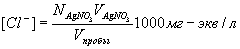 Содержание хлоридов в мг/л (X) или в мг-экв/л (Y) вычисляют по формулам: