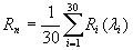 где Ri - коэффициент отражения света; λi - длина волны. Примечание - В случае, если применяемый спектрофотометр имеет диапазон длин волн до 25 мкм, то к значениям коэффициента спектрального отражения на длинах волн свыше 25 мкм приравнивается значение, полученное на длине волны 25 мкм. При этом аппроксимацию обязательно указывают в протоколе испытаний. Таблица 6 - Длины волн для определения нормального отражения Rn