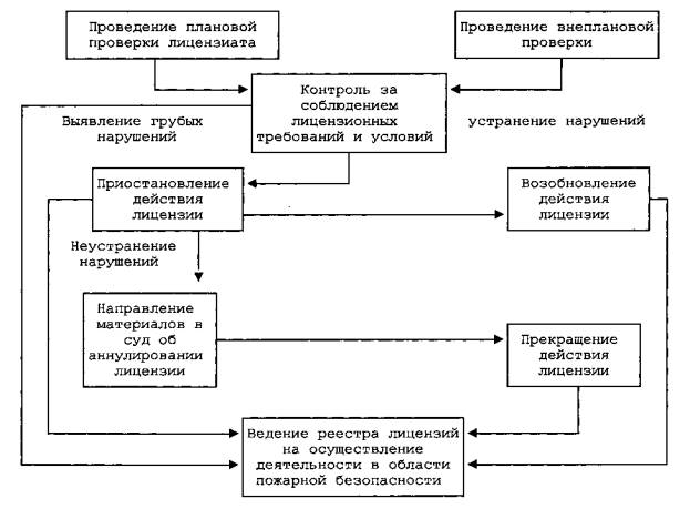 1. Общие положения1.1. Административный регламент Министерства Российской Федерации по делам гражданской обороны, чрезвычайным ситуациям и ликвидации последствий стихийных бедствий по исполнению государственной функции по лицензированию деятельности в области пожарной безопасности (далее - Регламент) определяет сроки и последовательность административных процедур при исполнении Министерством Российской Федерации по делам гражданской обороны, чрезвычайным ситуациям и ликвидации последствий стихийных бедствий (далее - МЧС России) государственной функции по лицензированию деятельности в области пожарной безопасности (далее - административные процедуры). Лицензирование деятельности в области пожарной безопасности включает в себя лицензирование деятельности по тушению пожаров и лицензирование деятельности по производству работ по монтажу, ремонту и обслуживанию средств обеспечения пожарной безопасности зданий и сооружений. В Регламенте под деятельностью по тушению пожаров понимается деятельность по организации и осуществлению профилактики пожаров, организации и осуществлению действий, направленных на спасение людей, имущества и ликвидацию пожаров, а под производством работ по монтажу, ремонту и обслуживанию средств обеспечения пожарной безопасности зданий и сооружений понимается осуществление мероприятий, связанных с монтажом, ремонтом и обслуживанием активных и пассивных систем обеспечения пожарной безопасности (пожаротушения, пожарной и охранно-пожарной сигнализации, противопожарного водоснабжения, дымоудаления, оповещения и эвакуации при пожаре, первичных средств пожаротушения, противопожарных занавесов и завес, заполнений проемов в противопожарных преградах) и их элементов, а также трубо-печных работ, работ по огнезащите материалов, изделий и конструкций. 1.2. Исполнение государственной функции по лицензированию деятельности в области пожарной безопасности осуществляется в соответствии с: Федеральным законом от 21 декабря 1994 г. N 69-ФЗ "О пожарной безопасности";*(1) Федеральным законом от 8 августа 2001 г. N 128-ФЗ "О лицензировании отдельных видов деятельности" (далее - Закон);*(2) Федеральным законом от 8 августа 2001 г. N 134-ФЗ "О защите прав юридических лиц и индивидуальных предпринимателей при проведении государственного контроля (надзора)";*(3) Кодексом Российской Федерации об административных правонарушениях;*(4) Налоговым кодексом Российской Федерации*(5); Указом Президента Российской Федерации от 11 июля 2004 г. N 868 "Вопросы Министерства Российской Федерации по делам гражданской обороны, чрезвычайным ситуациям и ликвидации последствий стихийных бедствий";*(6) постановлением Правительства Российской Федерации от 19 июня 2002 г. N 438 "О едином государственном реестре юридических лиц";*(7) постановлением Правительства Российской Федерации от 16 октября 2003 г. N 630 "О едином государственном реестре индивидуальных предпринимателей, правилах хранения в единых государственных реестрах юридических лиц и индивидуальных предпринимателей документов (сведений) и передачи их на постоянное хранение в государственные архивы, а также о внесении изменений и дополнений в Постановления Правительства Российской Федерации от 19 июня 2002 г. N 438 и 439";*(8) постановлением Правительства Российской Федерации от 26 февраля 2004 г. N 110 "О сове