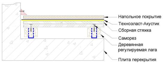Конструктив используется, как правило, при ремонте или замене финишного покрытия пола. 3.4. Конструкция пола с регулируемыми лагами.