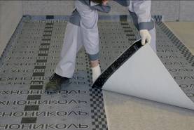5. Укладка материала Техноэласт-Акустик Супер.Работу с материалом производят в хлопчатобумажных перчатках и спец. одежде (одежда должна быть из плотной ткани, обувь - мягкая, без каблуков). После подготовки поверхности для укладки материала в соответствии с п. 3.1., материал можно укладывать на основание. Ввиду того, что материал Техноэласт-Акустик Супер помимо звукоизоляции является еще и гидроизоляцией, процедура его укладки отличается от процедуры укладки материала Техноэласт-Акустик.