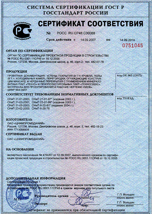 СТЕНЫ, ПОКРЫТИЯ (В Т.Ч. КРОВЛИ), ПОЛЫ (В Т.Ч. ХОЛОДИЛЬНЫХ КАМЕР), ПЕРЕГОРОДКИ, ОГРАЖДАЮЩИЕ КОНСТРУКЦИИ МАНСАРД И ЧЕРДАЧНЫЕ ПЕРЕКРЫТИЯ С ПРИМЕНЕНИЕМ МИНИРАЛОВАТНЫХ ПЛИТ «ТЕХНО» И ПЕНОПОЛИСТИРОЛЬНЫХ ПЛИТ «ТЕХНОПЛЕКС» МАТЕРИАЛЫ ДЛЯ ПРОЕКТИРОВАНИЯ И РАБОЧИЕ ЧЕРТЕЖИ УЗЛОВ ШИФР М24.04/07