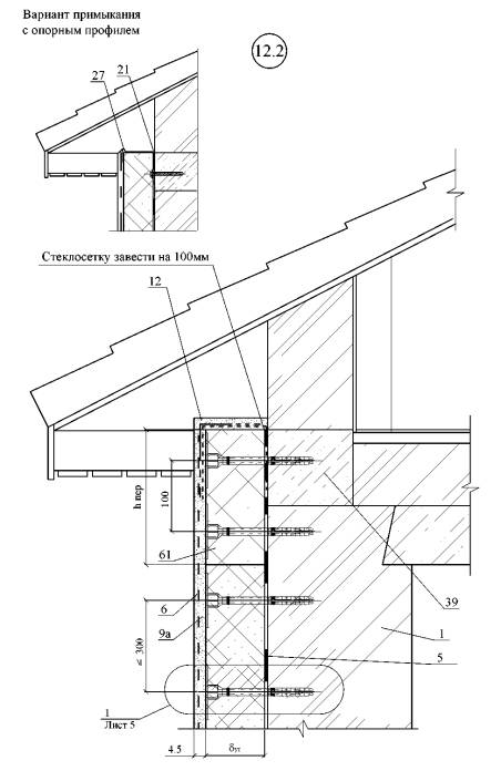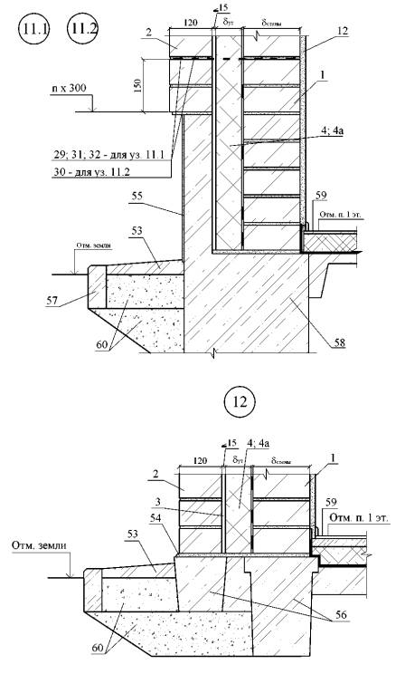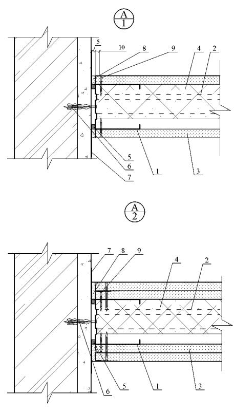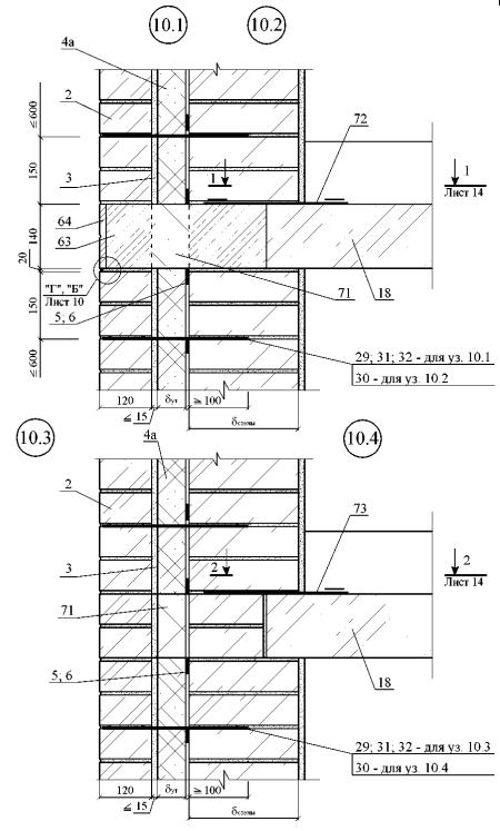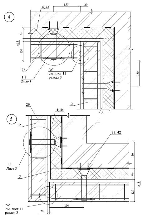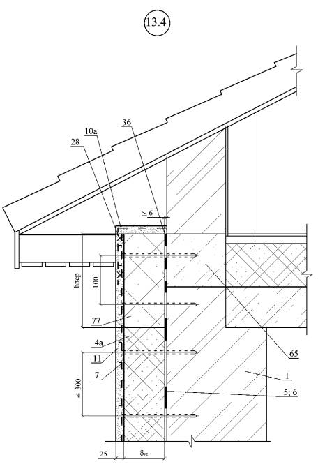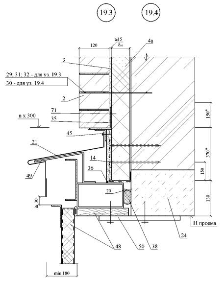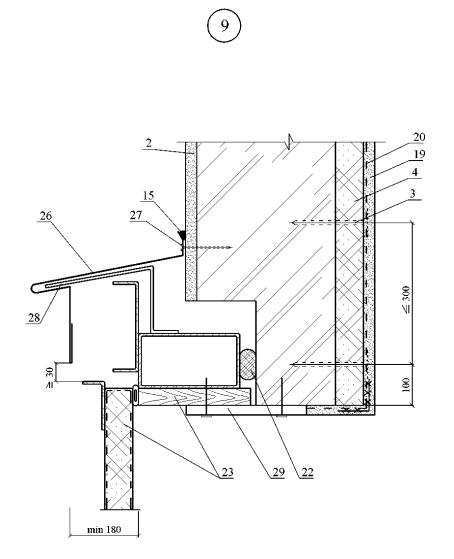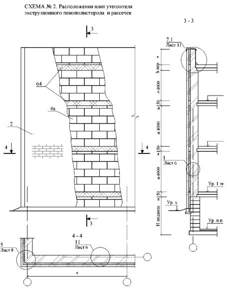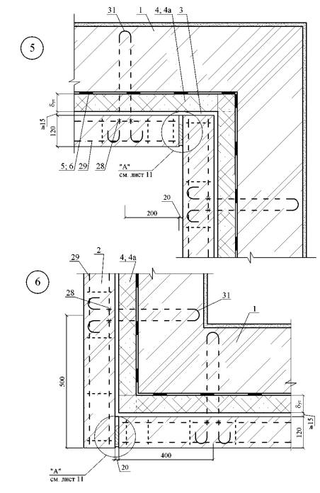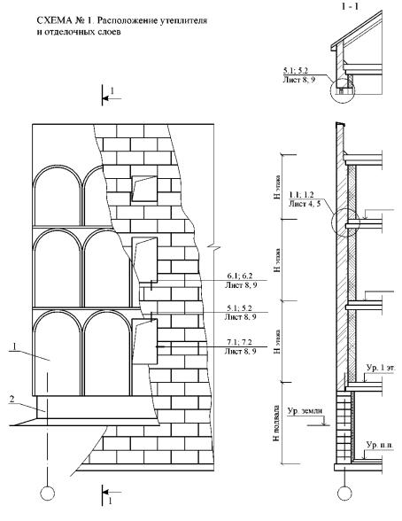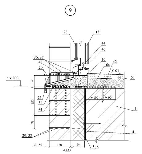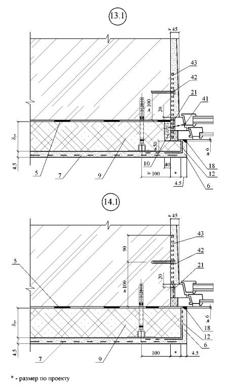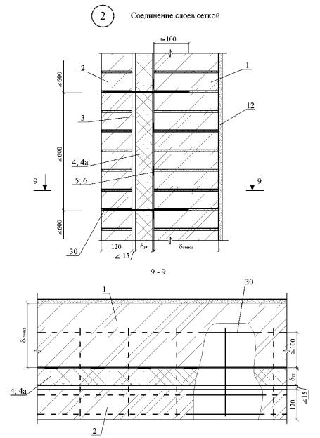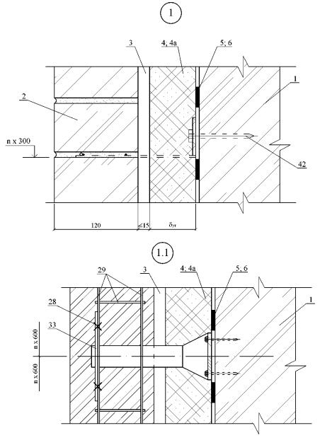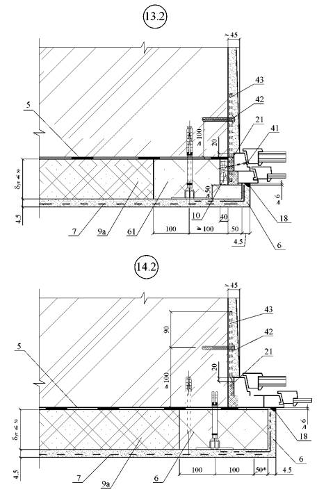 КОНСТРУКТИВНЫЕ РЕШЕНИЯ СТЕНСтена при новом строительстве может быть несущей или самонесущей и представляет собой трехслойную конструкцию с несущим слоем из полнотелого керамического кирпича, бетонных блоков или монолитного железобетона. 4 СТЕНЫ С ОТДЕЛОЧНЫМ СЛОЕМ ИЗ ТРАДИЦИОННОЙ ШТУКАТУРКИ4.1 При отделочном слое из традиционной штукатурки толщиной 25-30 мм в качестве теплоизоляции используются плиты минераловатные «ТЕХНОПЛАСТ», «ТЕХНОФАС» или из экструдированного пенополистирола «ТЕХНОПЛЕКС». 4.2 При защитно-декоративном слое из штукатурки необходимо, чтобы: - штукатурка имела нулевой предел распространения огня; - традиционная штукатурка должна выполняться толщиной 25-30 мм по закрепленной к несущей части стены стальной сетке; - при теплоизоляции из пенополистирола в уровне перекрытий, но не реже чем через 4 м по вертикали, следует предусмотреть рассечки из «негорючих» материалов (из минераловатных плит ««ТЕХНОПЛАСТ», «ТЕХНОФАС» на всю толщину слоя теплоизоляции и высотой не менее толщины перекрытия (не менее 150 мм)); - по контуру оконных и дверных проемов должен предусматриваться слой негорючей теплоизоляции шириной 100-120 мм из минераловатной плиты см. «Пособие по определению пределов огнестойкости конструкций, пределов распространения огня по конструкциям и групп возгораемости материалов (к СНиП II-2-80)», М., ЦНИИСК, 1985г., табл. 10 п.п. 1, 2.30 и табл. 3. - штукатурка на высоту 2,5 м от планировки должна иметь защиту от механических повреждений. 4.3 Теплоизоляционные плиты крепят к несущему слою стены на клею и дополнительно распорными дюбелями. При подготовке несущей части стены до закрепления к ней теплоизоляции рекомендуется использовать при необходимости: антигрибковый препарат, грунтовку. 4.4 Для наклейки теплоизоляционных плит рекомендуется применять клеевую смесь. 4.5 Клей следует наносить на теплоизоляционную плиту с помощью штукатурного шпателя или валиком (шириной 4-6 см) по всему периметру с отступлением от краев на 2-3 см и дополнительно “куличами” на остальную поверхность плиты, при этом площадь приклеенной поверхности плит - не менее 40%. 4.6 Установку плит в проектное положение осуществляют с прижатием к поверхности несущей части стены и выравниванием по высоте относительно друг друга трамбовками. Попадание клея в швы между плитами недопустимо. 4.7 Выравнивание по горизонтали теплоизоляционных плит может осуществляться с помощью временно закрепленной к несущей части стены деревянной рейки или с применением цокольного профиля (изготовленного из алюминия или оцинкованной стали) толщиной 1-1,5 мм, который закрепляют к несущей части стены дюбелями, располагаемыми с шагом не более 300 мм. 4.8 При установке цокольных профилей необходимо оставлять зазор в стыке между ними в 2-3 мм. Для выравнивания вдоль несущей части стены необходимо использовать соответствующие подкладочные шайбы из ПВХ, а для соединения профилей между собой пластмассовые соединительные элементы. 4.9 После установки первого ряда теплоизоляционных плит на цокольный профиль зазор между поверхностью несущей части стены и профилем необходимо заполнить полиуретановой пеной. 4.10 Теплоизоляционные плиты устанавливают вплотную друг к другу. В случае если между ними образуются зазоры более 2 мм их необходимо заполнить материалом используемого утеплителя. 4.11 У