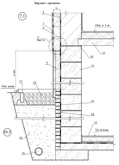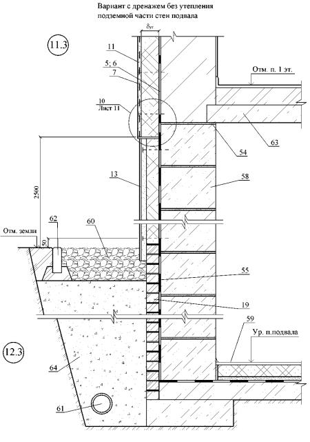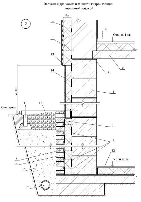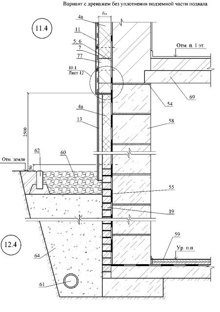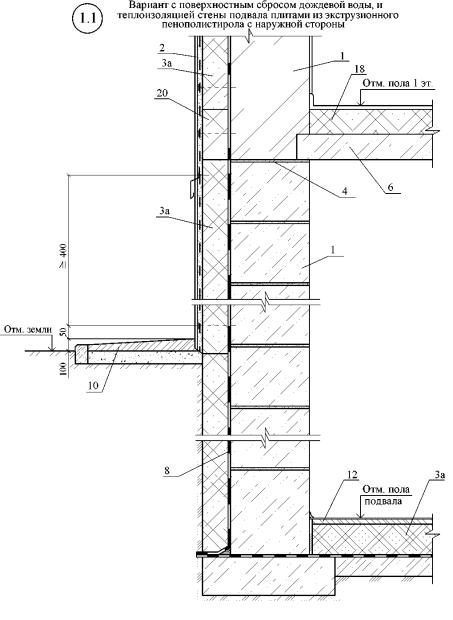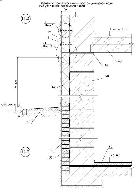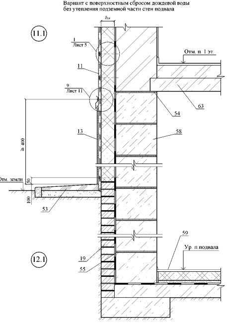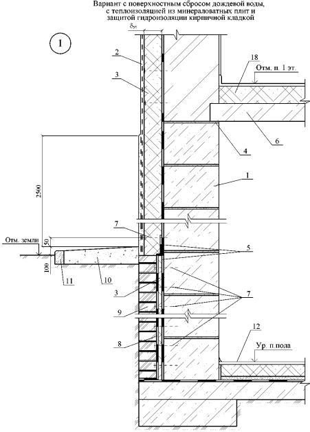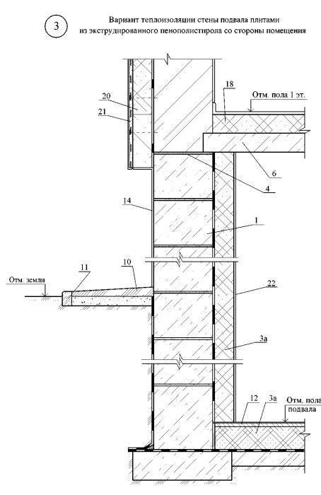 где Rreq - нормируемое сопротивление теплопередаче наружной стены, принятое в зависимости от значения Dd, (м2×оС)/Вт; δ - толщина несущей части стены, м; λ - коэффициент теплопроводности материала несущей части стены, Вт/(м×оС); λут - коэффициент теплопроводности теплоизоляции, Вт/(м×оС). 3.10 Требуемая толщина теплоизоляции стены подвала, расположенной ниже уровня земли, вычисляется по формуле: