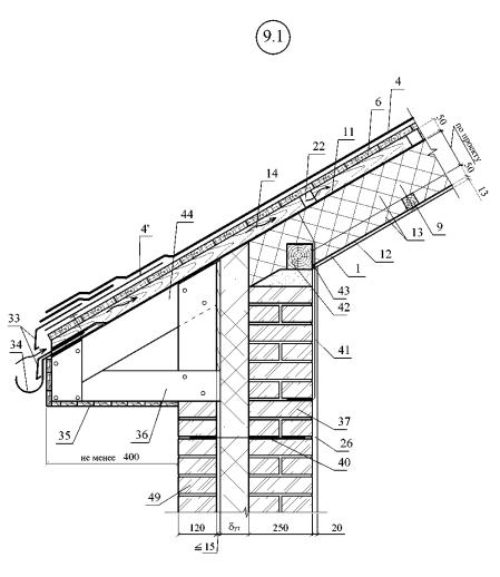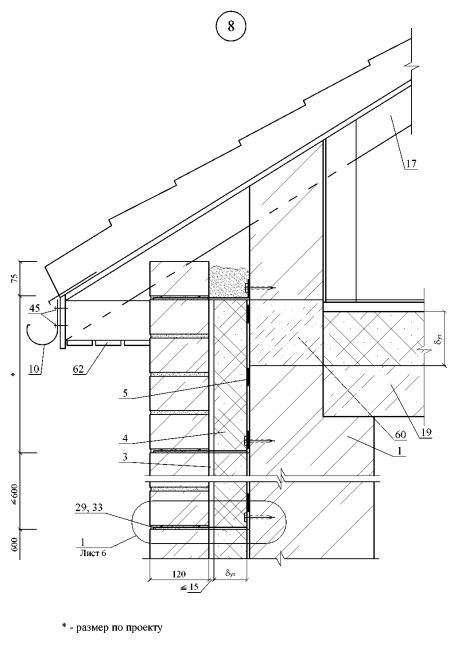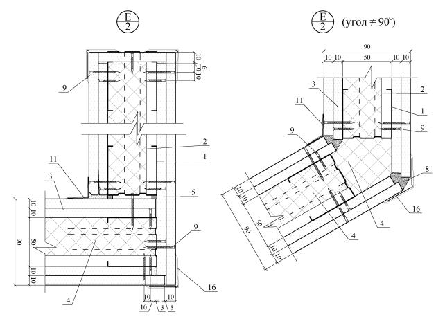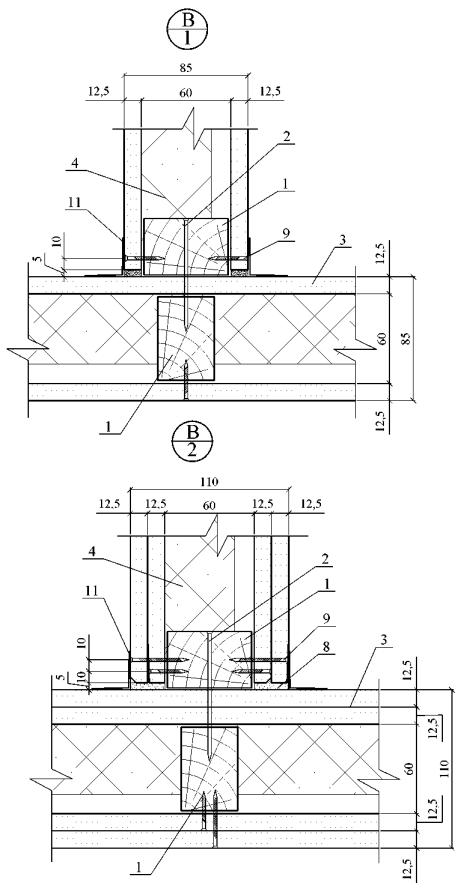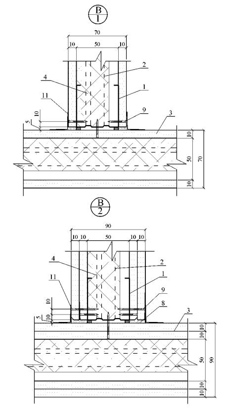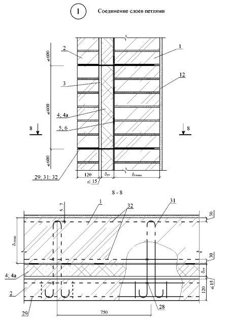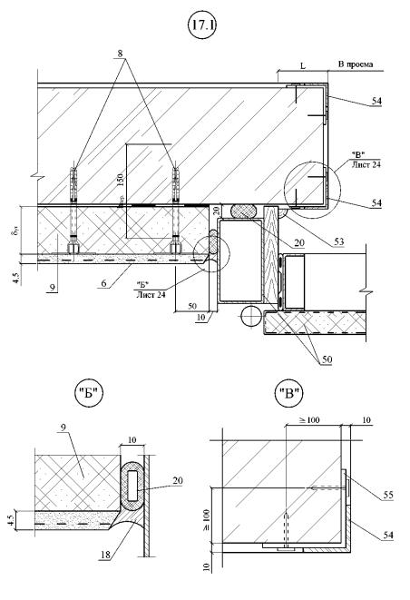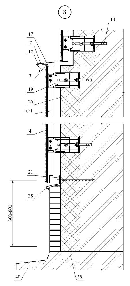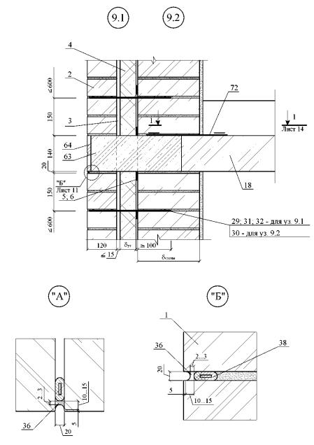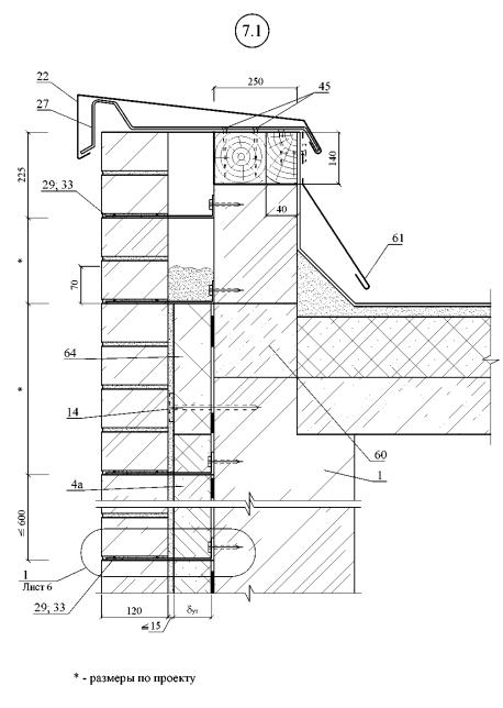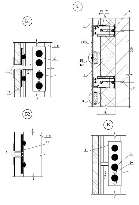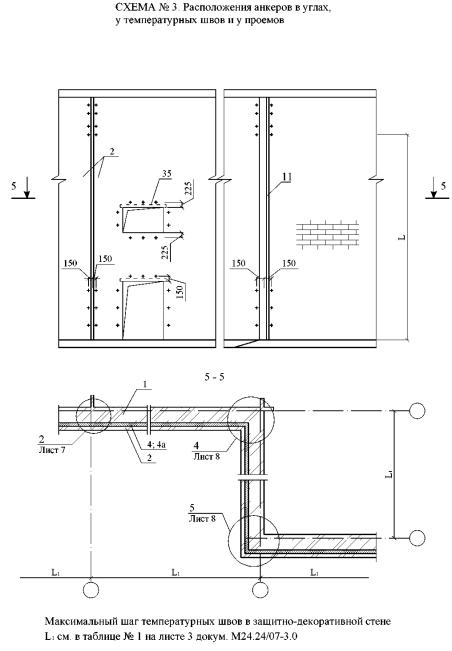 Примечание: * - В бетоне В³15, кладке из полнотелого керамического кирпича. В кладке из дырчатого кирпича или легкого бетона расчетное усилие уменьшается на половину. ** - В бетоне В³12,5. *** - В кладке из полнотелого кирпича. 6.5 Парапеты, пояса, подоконники и т.п. должны иметь надежные сливы из оцинкованной стали, которые обеспечивают отвод атмосферной влаги и исключают возможность ее сбегания непосредственно по стене. 6.6 Все открытые поверхности стальных элементов, выходящих на фасад, и анкера, устанавливаемые в кладке, должны быть защищены от коррозии металлизацией слоем толщиной 120 мкм или лакокрасочными покрытиями (п. 2.40-2.45 СНиП 2.03.11-85). 6.7 Отделку цоколя рекомендуется выполнять из материалов повышенной прочности и декоративности, допускающих их очистку и мойку, например, из лицевого кирпича, плит из натурального или искусственного камня, керамической и стеклянной плитки и др. Верхняя кромка этой защитно-декоративной отделки должна располагаться не ниже 2,5 м от уровня планировки. Аналогичную отделку могут иметь углы стен, порталы дверей, арок, ворот, оконные наличники или отдельные участки глухих стен. 7 КАРКАСНЫЕ СТЕНЫ7.1 Каркасные конструкции стен могут быть выполнены послойной сборкой или из трехслойных панелей укрупнительной сборки. 7.2 В целях снижения трудоемкости производства работ сборку панелей с последующим их монтажом целесообразно производить на объекте строительства. 7.3 Панели имеют наружный каркас, выполненный из стальных швеллеров, к которому закреплены на заклепках профлист внутренней обшивки и внутренний каркас панели, а к нему профлист наружной обшивки. 7.4 Теплоизоляция выполняется из минераловатных плит марки «ТЕХНОЛАЙТ ЭКСТРА», «ТЕХНОЛАЙТ ОПТИМА», «ТЕХНОЛАЙТ ПРОФ», «ТЕХНОБЛОК СТАНДАРТ», «ТЕХНОБЛОК ОПТИМА», «ТЕХНОБЛОК ПРОФ», по которым с наружной стороны размещается ветрозащитная пленка типа Мембрана супердиффузионная ТехноНИКОЛЬ, а с внутренней стороны при необходимости слой пароизоляции (см. п. 1.1). 7.5 Крепление панелей укрупнительной сборки к несущим конструкциям стального каркаса выполняется на высокопрочных болтах. 8 СТЕНЫ С ВЕНТИЛИРУЕМОЙ ВОЗДУШНОЙ ПРОСЛОЙКОЙ8.1 Стены с вентилируемой воздушной прослойкой включают несущую часть, выполненную из полнотелого керамического кирпича, бетонных блоков или из монолитного железобетона, металлический каркас, теплоизоляционный слой из минераловатных плит марки «ТЕХНОВЕНТ СТАНДАРТ», «ТЕХНОВЕНТ ОПТИМА», «ТЕХНОВЕНТ ПРОФ» или «ТЕХНОВЕНТ ДВУХСЛОЙНЫЙ», ветрозащитную пленку (см. п. 1.1) и защитный облицовочный экран. 8.2 Каркас состоит из кронштейнов, направляющих и кляммеров для закрепления облицовки. 8.3 Кронштейны и направляющие каркаса, а также кляммеры для крепления плит облицовки изготавливаются из оцинкованной стали. Толщина прижимов кляммеров должна составлять не менее 1 мм, ширина прижима - не менее 10 мм. 8.4 Кронштейн имеет подвижную вставку, позволяющую осуществлять регулировку установки направляющих в заданной плоскости. Длина подвижной вставки установлена исходя из толщины теплоизоляционного слоя от 50 до 270 мм. 8.5 Шаг кронштейнов по горизонтали рекомендуется принимать равным 600 мм, а по вертикали не менее 1400 мм. 8.6 Кронштейны крепятся к несущей части стены анкерными дюбелями, число которых определяется расчетом, исходя из величины ветровой нагрузки 