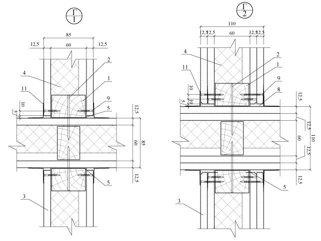19.11 Крепление листов обшивки к каркасу перегородок осуществляется самонарезающими винтами, приведенными в табл. 11. Таблица 11