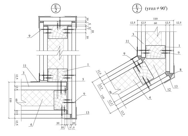 19.12 Швы между листами обшивки следует заделывать шпаклевочной смесью. 19.13 Выбор конструктивного решения перегородок в зависимости от высоты и требований звукоизоляции следует производить по таблицам на стр. 219, 220 и 232. 19.14 Перегородки с обшивками из листов ГКЛ и ГВЛ на металлическом каркасе с заполнением из минераловатных материалов группы горючести НГ (ГОСТ 30244-94) относятся к классу пожарной опасности КО. Область применения перегородок должна определяться с учетом требований СНиП 21-01-97 и нормативных документов на здания функционального различного назначения. 19.15 Монтаж перегородок следует выполнять с учетом указаний СП 55-101-2000 и СП 55-102-2001. Монтаж осуществляется до устройства чистого пола в условиях сухого или нормального температурно-влажностного режима. 19.16 До начала монтажа перегородок все строительные работы, связанные с «мокрыми» процессами должны быть закончены. Монтаж осуществляется до устройства чистого пола в условиях сухого или нормального температурно-влажностного режима. РАЗДЕЛ 1СТЕНЫ С ЗАЩИТНО-ДЕКОРАТИВНЫМ СЛОЕМ ИЗ ТРАДИЦИОННОЙ