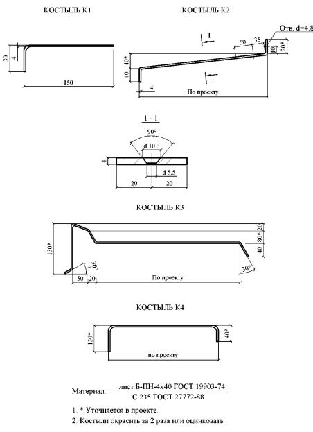 Костыль МС-1 с шагом 700 мм, см. в серии 1.435-28 |