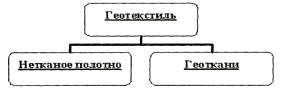 А) Тканый геотекстиль (геоткань) - текстиль, произведенный посредством переплетения (обычно под прямым углом) двух или более волокон/нитей; Б) Нетканый геотекстиль (геополотно) -текстиль, произведенный посредством механического или термического закрепления волокон, нитей.