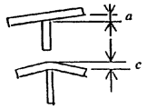 Рисунок 1 Рисунок 2 Рисунок 3 Рисунок 4 6.3 Разметку на металлопрокате и подметку по шаблонам следует выполнять чертилками и кернерами. Центры отверстий следует дополнительно пробивать кернером на глубину не менее 2 мм. 6.4 Кондукторы для сверления отверстий следует изготавливать из стали, при этом впрессованные втулки должны быть закалены. Кондукторы должны быть изготовлены с точностью, приведенной в таблице 3. Кондукторы должны быть приняты ОТК и замаркированы с указанием даты проверки. По мере работы следует выполнять повторные проверки точности (при изготовлении конструкций нового заказа). 6.5 Шаблоны необходимо изготавливать из материалов (металла, дерева, пластмассы, картона и др.), обеспечивающих требуемое качество шаблонов с учетом повторяемости их применения при изготовлении деталей. Предельные отклонения размеров шаблонов должны быть в два раза меньше значений, приведенных в таблице 4. 6.6 Маркировка шаблонов должна содержать: номер заказа, чертежа и детали; число деталей, диаметр и число отверстий (при наличии). 7 РЕЗКА И МЕХАНИЧЕСКАЯ ОБРАБОТКА ПРИ ИЗГОТОВЛЕНИИ ДЕТАЛЕЙ7.1 Резку профильного проката можно производить на прессножницах, в штампах, фрикционными и абразивными пилами, зубчатыми пилами, ручной, машинной и термической резкой без последующей механической обработки торцов деталей. Эти способы обработки допустимы для любых марок стали и любых условий эксплуатации конструкций. 7.2 Торцы деталей из профильного проката в независимости от способа обработки не должны иметь трещин, а также заусенцев и завалов более 1 мм. 7.3 Резку листового проката следует выполнять на гильотинных ножницах, зарубочных машинах, в штампах, ручной и машинной термической резкой. 7.4 Резку листового проката на гильотинных ножницах, зарубочных машинах и штампах не следует выполнять при изготовлении деталей: - из сталей с нормативным пределом текучести более 350 МПа; - толщиной более 25 мм из сталей с нормативным пределом текучести более 275 МПа; - толщиной более 16 мм из сталей с нормативным пределом текучести 285 - 350 МПа. 7.5 Резку листового проката на гильотинных ножницах, зарубочных машинах и штампах запрещается производить при изготовлении деталей из любых марок стали: - конструкций I и II групп в соответствии с классификацией СНиП II-23-81*, работающих на растяжение, продольные кромки которых после сборки и сварки остаются свободными, в том числе стыковых накладок; - фасонок стропильных и подстропильных ферм, пролетных строений транспортерных галерей, а также фасонок прочих конструкций группы I в соответствии с классификацией СНиП II-23-81*. 7.6 Кромки деталей после резки на гильотинных ножницах, зарубочных машинах и в штампах не должны иметь трещин, расслоений, заусенцев и завалов более 1 мм. 7.7 Возможно применение без ограничений резки на гильотинных ножницах, зарубочных машинах и в штампах с последующей механической обработкой кромок на величину не менее 0,2 толщины листового проката. 7.8 В остальных случаях, за исключением вышеизложенных, резку на гильотинных ножницах, зарубочных машинах и в штампах следует допускать без ограничений. 7.9 Параметры режимов механической обработки деталей конструкций следует определять с учетом основных показателей механических свойств стального проката: предела текучести, временного сопротивления растяжению, относит